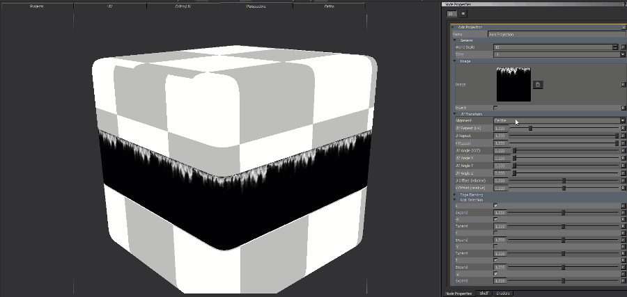 Fully opaque projection by default Different from the Triplanar Projection, the default Curve together with default 'Expand' settings will result in a completely opaque projection when all axis directions are turned on. |