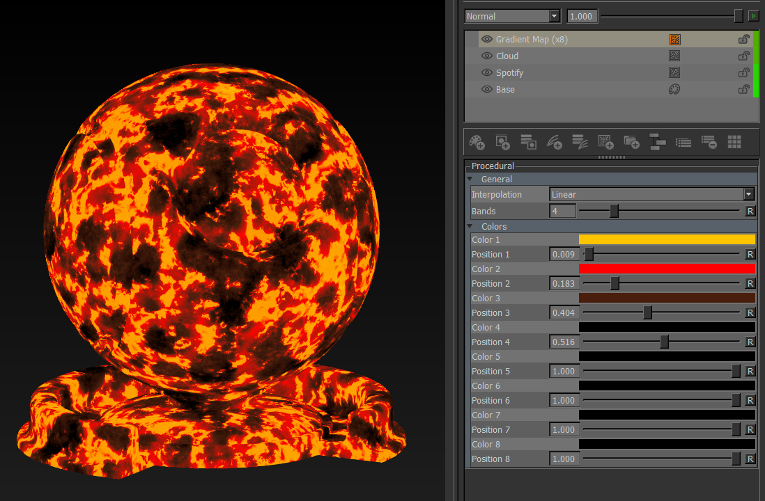 The Gradient Map Adjustment Node is a workaround to Mari's lack of proper Ramps/Gradients.