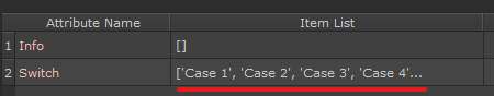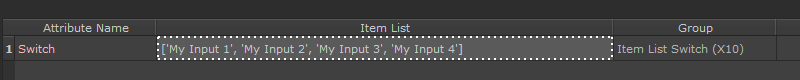 4.Locate the "Item List" Column. With default settings, it is the last column on the far right side (you might have to scroll). Our node only has two attributes, so we can easily identify the Dropdown Attribute "Switch".