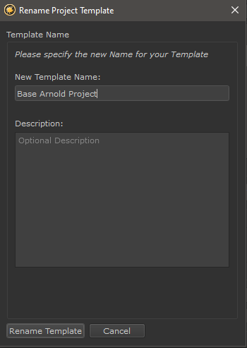 Template Descriptions are entered during Saving a Template and can also be edited via the Rename Template Dialog.