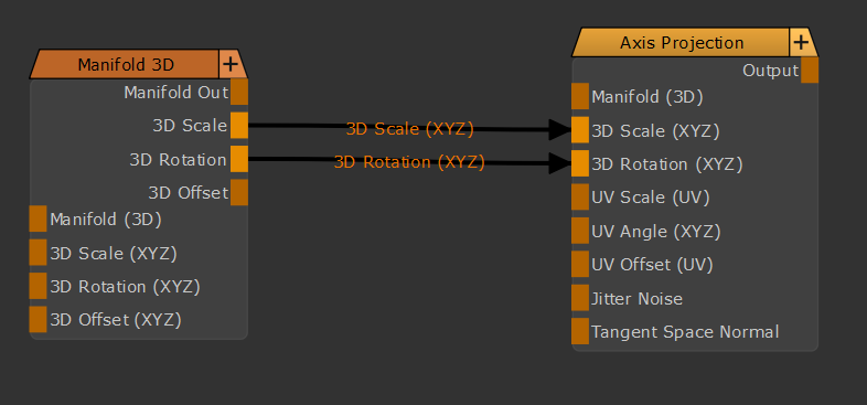 3D Scale, 3D Rotation can for example be used to drive the 3D Scale and 3D Rotation on Triplanar nodes