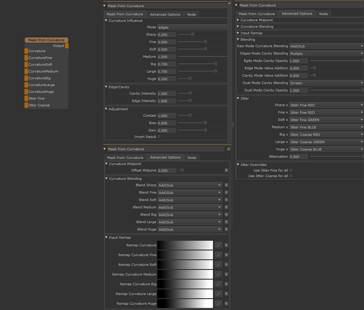 Allows the individual tweaking of contrast and levels of the supplied Curvatures on the different Curvature Ports.