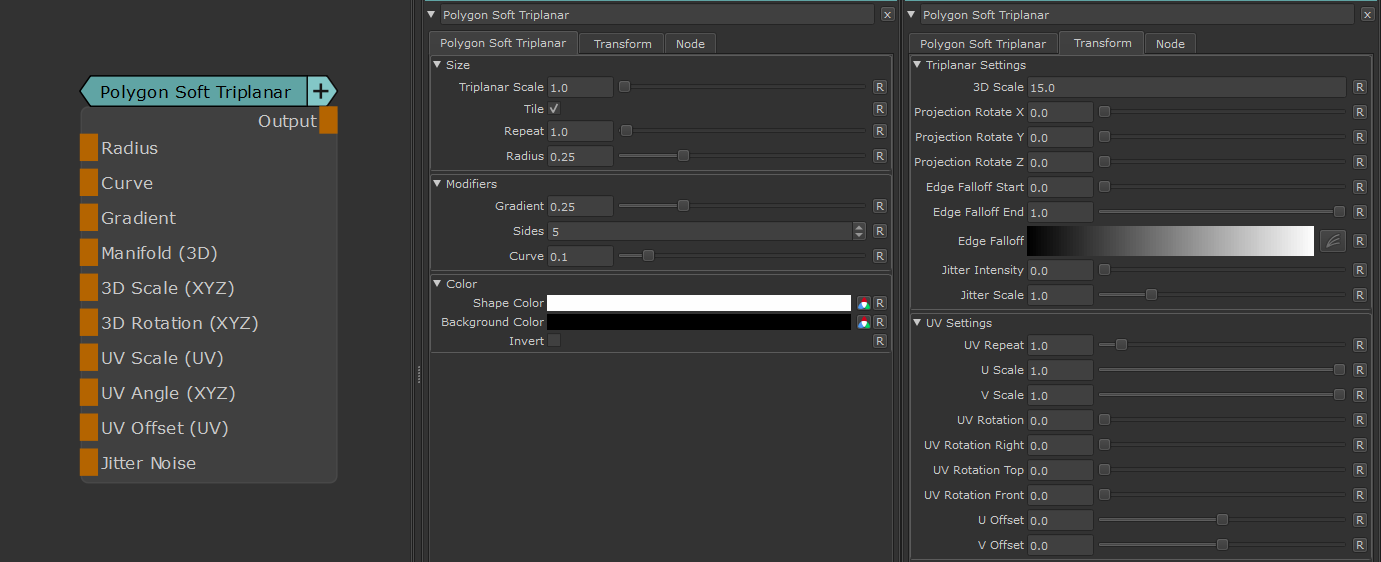 Polygon Soft Triplanar creates a polygon shape with soft edges.