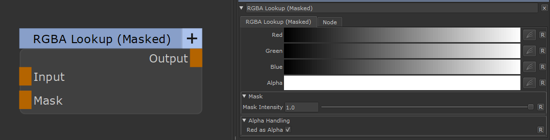 The RGBA Lookup (Masked) Node allows you the Adjust the Red, Green, Blue and Alpha channel of an Input via Curves.