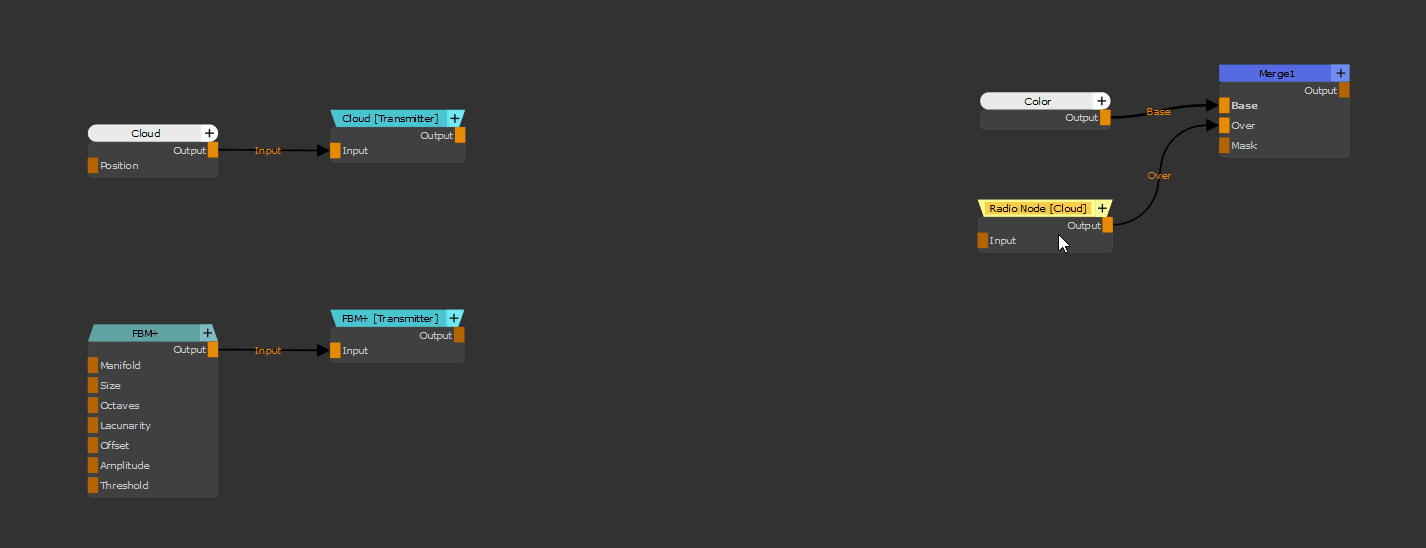 In addition to directly connecting a Radio Node to another Node you can also expose nodes anywhere in the graph via a Radio Transmitter Node.