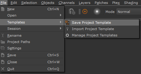 Saving a new template is done via the Save Project Template Option in the Templates Menu