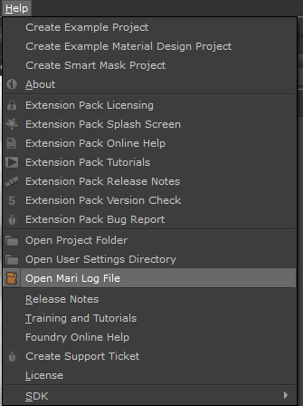 To Debug Mari issues with Support (Foundry or Extension Pack), it is often helpful to provide a Log file.
